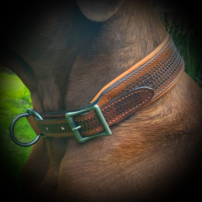 Verstellbares Zugstop-Lederhalsband von Hand punziert